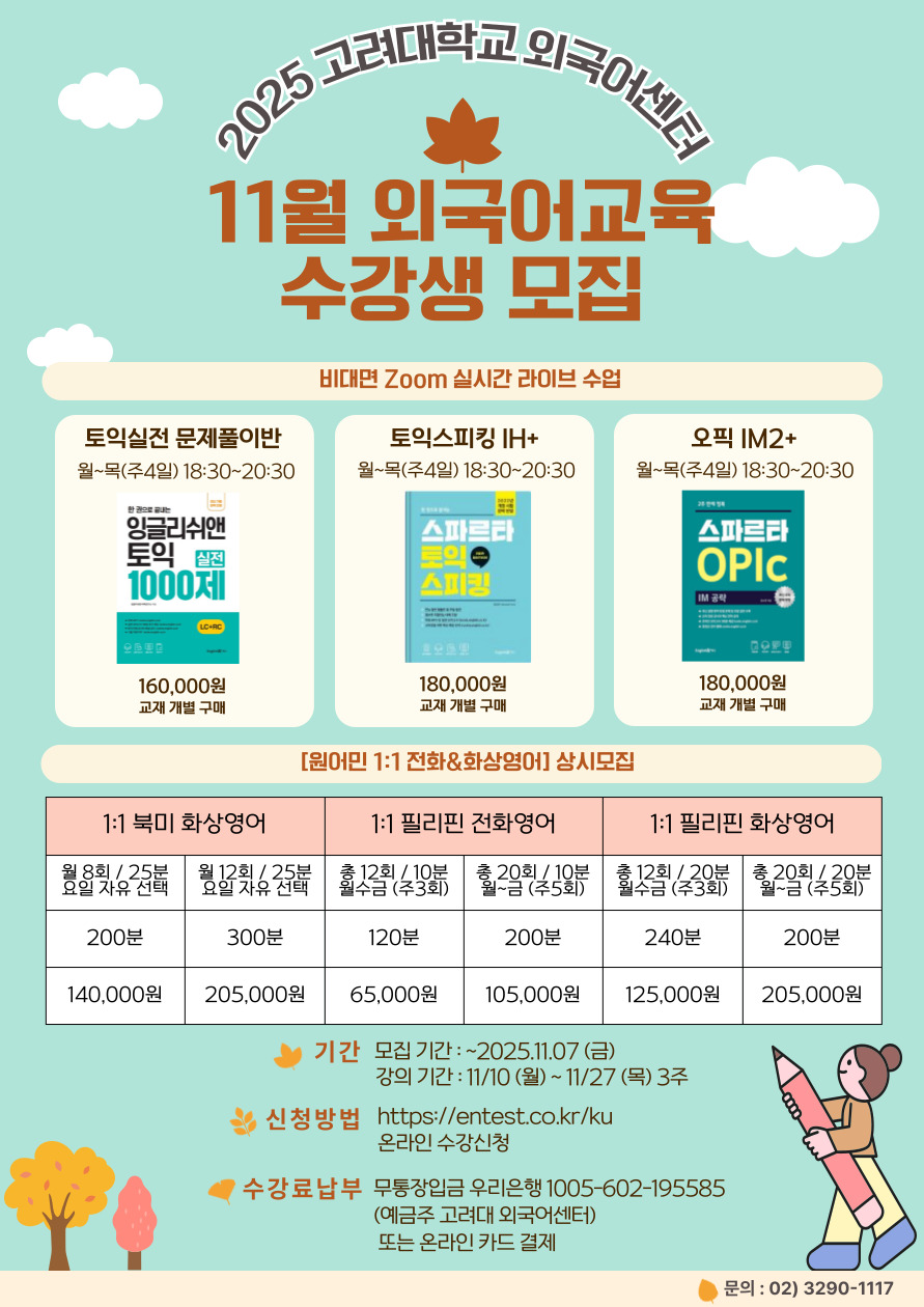 2025년 외국어센터 11월 단기 어학강좌 안내