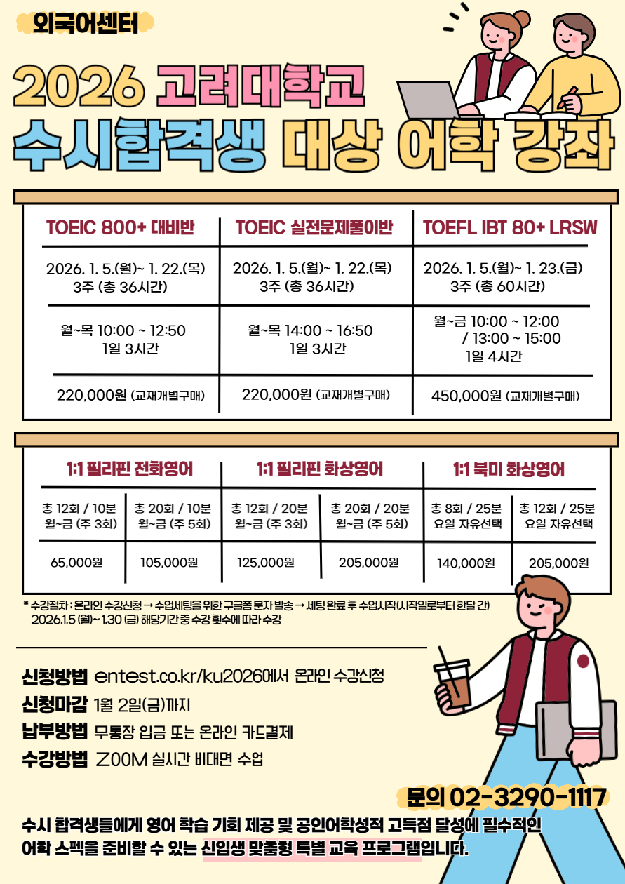 2026학년도 수시 합격생 대상 어학강좌 안내